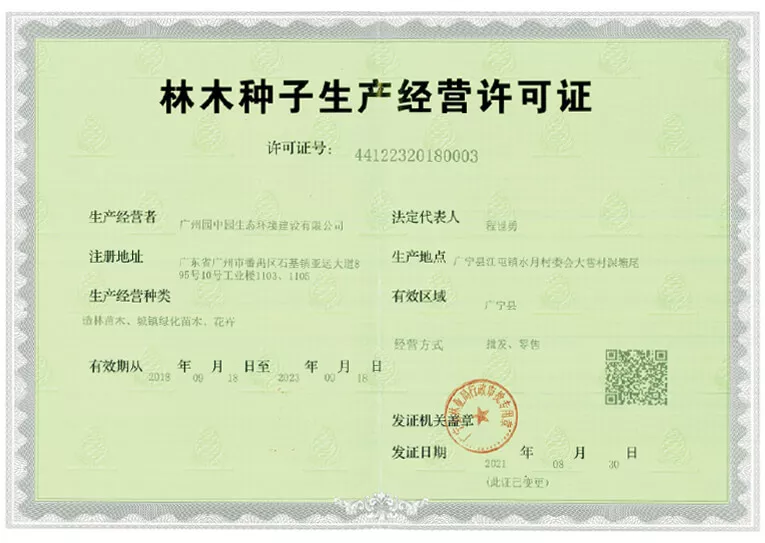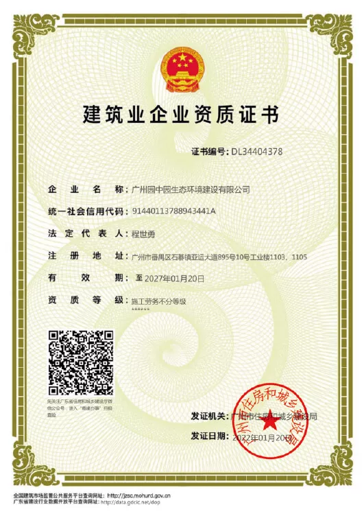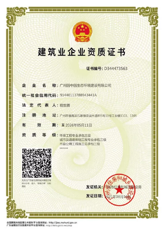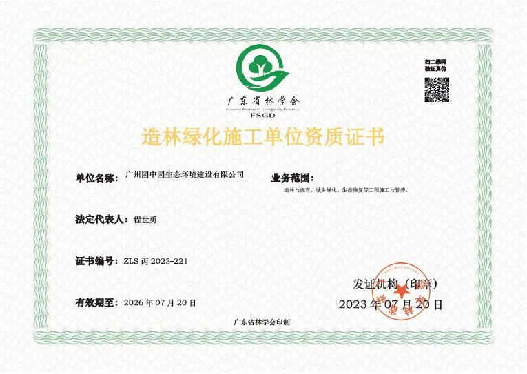 造(zao)林綠(lv)化施工單位資質證(zheng)書