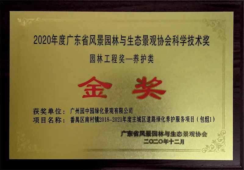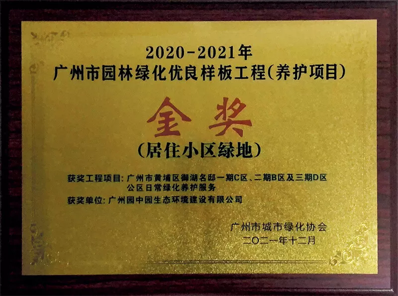 2020-2021廣州市園林綠化優良樣闆(ban)工程(養護項(xiang)目)金獎