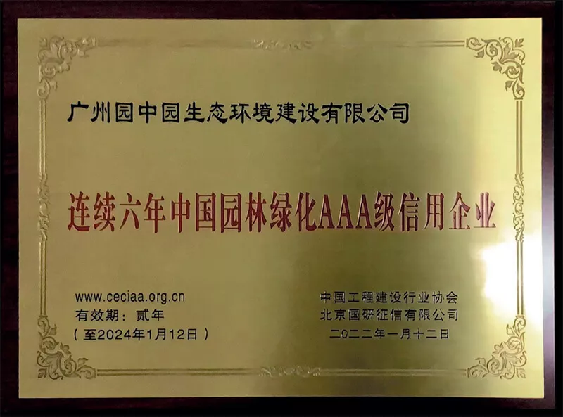 連續六年中國園林綠化AAA級信(xin)用企業