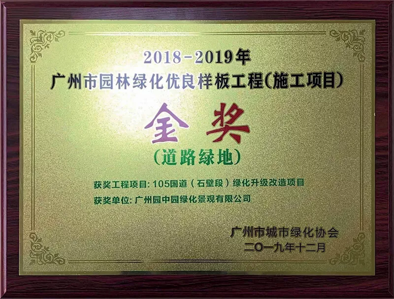 2018-2019廣州市園林綠化優良樣闆工程(養護項目)金獎