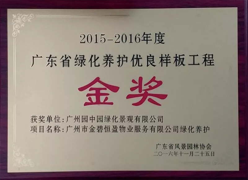 2015-2016廣東省綠化養護優良樣闆工程金獎